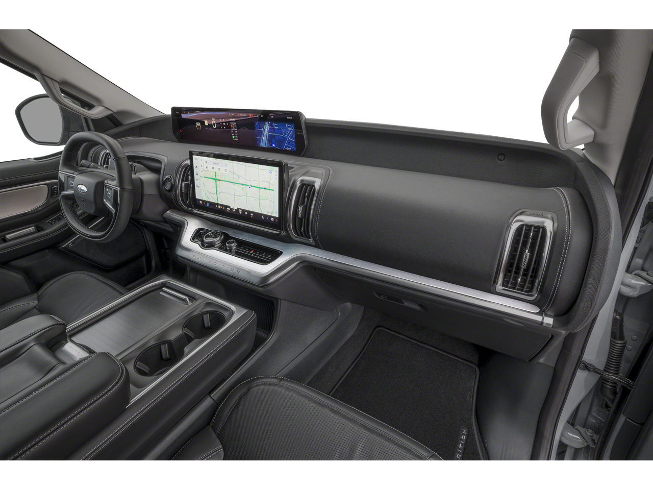 WE DELIVER ANYWHERE, 10 Speakers, 2nd Row Power-Folding Captain's Chairs, 3.73 Axle Ratio, 3rd row seats: split-bench, 4-Wheel Disc Brakes, ABS brakes, Air Conditioning, Alloy wheels, AM/FM radio: SiriusXM with 360L, Apple CarPlay/Android Auto, Auto High-beam Headlights, Auto-dimming door mirrors, Auto-dimming Rear-View mirror, Automatic temperature control, Black Headlamp Bezel with Satin Trim Applique, Black Onyx Painted Power Deployable Running Boards, BlueCruise (equipment + 1-Year + 90-Day Plan), BlueCruise Equipped (90-Day Trial), Brake assist, Bumpers: body-color, Carbon Black Front Bumper with Lit Grille Bar, Chrome Roof Rails with Black End Caps, Compass, Delay-off headlights, Driver door bin, Driver vanity mirror, Driver's Package, Dual front impact airbags, Dual front side impact airbags, Electronic Stability Control, Emergency communication system: 911 Assist, Engine Sound Enhancer, Equipment Group 600A Standard Package, Exterior Parking Camera Rear, Ford Connectivity Package (1-Year Included), Ford Digital Experience, Four wheel independent suspension, Front and 2nd Rows Floor Liners Without Carper Mats, Front anti-roll bar, Front Bucket Seats, Front Center Armrest, Front Door Scuff Plates with Met Insert and Bright Rear, Front dual zone A/C, Front reading lights, Fully automatic headlights, Garage door transmitter, Genuine wood dashboard insert, Genuine wood door panel insert, Heated and Ventilated Leather Front Captain's Chairs, Heated door mirrors, Heated front seats, Heated rear seats, Heated steering wheel, High Flow Exhaust System, Illuminated entry, Intersection Assist, Leather steering wheel, Low tire pressure warning, Memory seat, Multicontour Active Motion Lthr Frnt Captains Chairs, Navigation System, Occupant sensing airbag, Outside temperature display, Overhead airbag, Overhead console, Panic alarm, Passenger door bin, Passenger vanity mirror, Platinum Ultimate Interior Package, Platinum Ultimate Package, Polished Stainless Steel Beltline Molding, Power door mirrors, Power driver seat, Power moonroof: Vista Roof, Power passenger seat, Power steering, Power Tilt/Telescopic Steering Wheel with Memory, Power windows, Radio data system, Radio: B&O Play Unleashed, Radio: B&O Sound System by Bang and Olufsen, Rain sensing wipers, Rear air conditioning, Rear anti-roll bar, Rear reading lights, Rear Seat Radio Controls, Rear Side Windows Laminated Glass, Rear window defroster, Rear window wiper, Reclining 3rd row seat, Remote keyless entry, Satin Aluminum Expedition Lettering on Side and Hood, Satin Aluminum Platinum Badge on Tailgate, Security system, Signature Grille Lighting, SiriusXM with 360L, Speed control, Speed-sensing steering, Speed-Sensitive Wipers, Split folding rear seat, Spoiler, Steering wheel memory, Steering wheel mounted audio controls, Tachometer, Telescoping steering wheel, Tilt steering wheel, Traction control, Trip computer, Turn signal indicator mirrors, Variably intermittent wipers, Ventilated front seats, Voltmeter, Wheels: 20 x 8.5 Ebony Bright Machined Aluminum, Wheels: 22 x 9.0 Ebony Bright Machined Face Aluminum, Wheels: 24 x 9.5 Tarnished Dark Metallic.