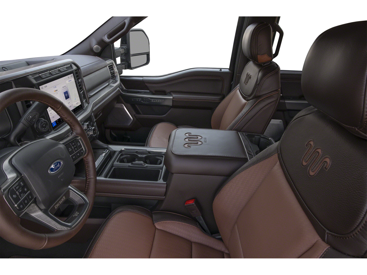 WE DELIVER ANYWHERE, 4WD, 14 Speakers, 4-Wheel Disc Brakes, 410 Amp Dual Alternators, ABS brakes, Adjustable pedals, Air Conditioning, All-Weather Floor Mats, Alloy wheels, AM/FM radio: SiriusXM with 360L, Auto High-beam Headlights, Auto tilt-away steering wheel, Auto-dimming Rear-View mirror, Automatic temperature control, Brake assist, Compass, Delay-off headlights, Driver door bin, Driver vanity mirror, Dual front impact airbags, Dual front side impact airbags, Electronic Stability Control, Emergency communication system: SYNC 4 911 Assist, Flow-Through Console, Ford Connectivity Package (1-Year Included), Front and Rear Wheel Well Liners, Front anti-roll bar, Front Bucket Seats, Front Center Armrest, Front dual zone A/C, Front fog lights, Front reading lights, Fully automatic headlights, FX4 Off-Road Package, Garage door transmitter, GVWR: F-250 >10K Package, Heads-Up Display, Heated door mirrors, Heated front seats, Heated rear seats, Heated steering wheel, Hill Descent Control, Illuminated entry, Internet access capable: 5G Modem - Ford Connectivity Package, Leather steering wheel, LED Roof Clearance Lights, Low tire pressure warning, Memory seat, Navigation system: Connected Navigation, Off-Road Specifically Tuned Shock Absorbers, Order Code 700A, Outside temperature display, Overhead airbag, Overhead console, Panic alarm, Passenger door bin, Passenger vanity mirror, Pedal memory, Power door mirrors, Power driver seat, Power passenger seat, Power steering, Power windows, Radio: B&O Unleashed Sound System by Bang & Olufsen, Rain sensing wipers, Rear reading lights, Rear seat center armrest, Rear step bumper, Rear window defroster, Remote keyless entry, SecuriCode Keyless Entry Keypad (driver's Side), Security system, SiriusXM with 360L, Speed control, Split folding rear seat, Steering wheel memory, Steering wheel mounted A/C controls, Steering wheel mounted audio controls, SYNC 4 with Enhanced Voice Recognition, Tachometer, Telescoping steering wheel, Tilt steering wheel, Traction control, Trip computer, Turn signal indicator mirrors, Unique FX4 Off-Road Box Decal, Unique King Ranch Leather 40/Console/40 Seats, Upfitter Switches (6), Variably intermittent wipers, Ventilated front seats, Wheels: 20 Bright Machined Aluminum, 4WD.