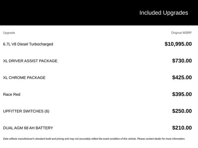 • 6.7L V8 Diesel Turbocharged (Power Stroke) engine with Operator Commanded Regeneration (OCR), Intelligent Oil-Life Monitor, and Manual Push-Button Engine-Exhaust Braking