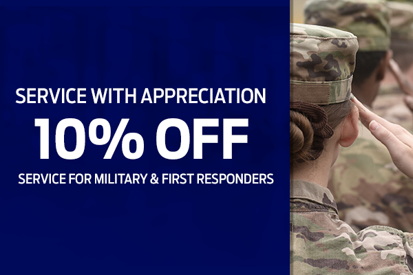 Plus tax and applicable fees. Valid for military members and first responders with proper identification. May not be combined with other offers. Must present coupon at time of service write-up. See dealer for details.