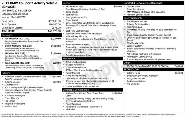 Jet Black 2011 BMW X6 xDrive35i 3.0L I6 DOHC 24V Turbocharged 8-Speed Sport Automatic with STEPTRONIC AWD