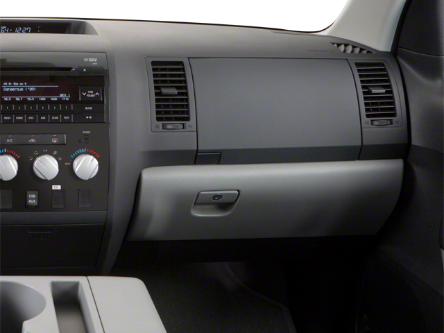 White 2012 Toyota Tundra Grade CrewMax i-Force 5.7L V8 DOHC FFV 6-Speed Automatic Electronic with Overdrive 4WD18 x 8J 5-Spoke Aluminum Disc Wheels, 18 x 8J Styled Steel Wheels, 3-Passenger Front Bench Seat, 4-Wheel Disc Brakes, 4.10 Axle Ratio, 6 Speakers, ABS brakes, Air Conditioning, AM/FM radio, AM/FM w/CD Player, Brake assist, Bumpers: chrome, CD player, Driver door bin, Driver vanity mirror, Dual front impact airbags, Dual front side impact airbags, Electronic Stability Control, Fabric Seat Trim, Front anti-roll bar, Front Bucket Seats, Front Center Armrest w/Storage, Front dual zone A/C, Front reading lights, Front wheel independent suspension, Heated door mirrors, Illuminated entry, Knee airbag, Low tire pressure warning, Occupant sensing airbag, Outside temperature display, Overhead airbag, Overhead console, Panic alarm, Passenger door bin, Passenger vanity mirror, Power door mirrors, Power steering, Power windows, Rear reading lights, Rear seat center armrest, Rear step bumper, Rear window defroster, Remote keyless entry, Speed control, Speed-sensing steering, Split folding rear seat, Tachometer, Tilt steering wheel, Traction control, Variably intermittent wipers, Voltmeter.Awards:* 2012 KBB.com Best Resale Value AwardsReviews:* If you need a tough and rugged truck that knows how to pamper its occupants, the 2012 Toyota Tundra is worth checking out. With the right configuration, the Tundra’s payload exceeds one ton and towing capacity can go to 10,400 pounds. Source: KBB.com