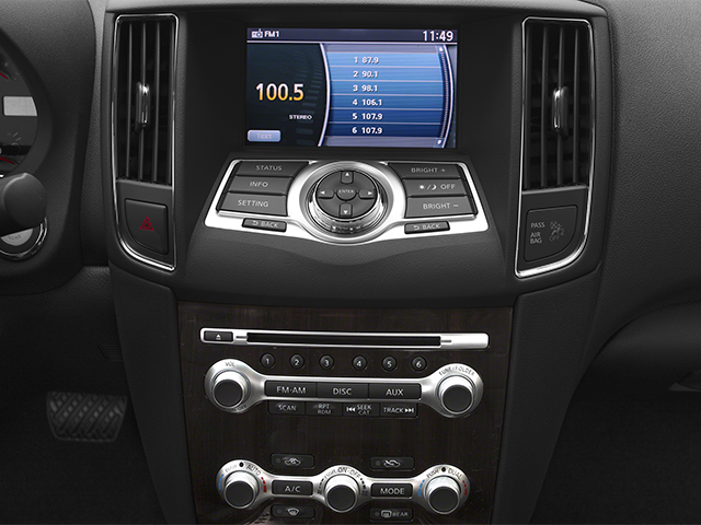 18 Aluminum Alloy Wheels, 2-Driver Memory System, 4-Wheel Disc Brakes, 7 Color Monitor & Rear View Monitor, 7 Touch-Screen Color Monitor w/VGA Display, 8 Speakers, ABS brakes, Air Conditioning, Alloy wheels, AM/FM radio, Anti-whiplash front head restraints, Atlantic Cherry Wood-Tone Trim, Auto-dimming Rear-View mirror, Automatic Entry/Exit, Automatic temperature control, Bluetooth® Streaming Audio, BOSE Audio System, Brake assist, Bumpers: body-color, Carpeted Floor Mats/Trunk Mat (5-Piece Set), CD player, Center Console, Climate Controlled Driver's Seat, Compass, Delay-off headlights, Driver door bin, Driver vanity mirror, Dual front impact airbags, Dual front side impact airbags, Dual-Panel Moonroof w/Power Retractable Sunshades, Electronic Stability Control, Four wheel independent suspension, Front anti-roll bar, Front Bucket Seats, Front Center Armrest w/Storage, Front dual zone A/C, Front fog lights, Front reading lights, Fully automatic headlights, Garage door transmitter: HomeLink, Heated Front Seats, Heated Outside Mirrors, Heated Steering Wheel, High-Intensity Discharge Xenon Headlights, Illuminated entry, Leather Shift Knob, Leather steering wheel, Leather-Appointed Seat Trim, Lg Rear-Seat Fold-Down Center Armrest w/Finisher, Low tire pressure warning, Monitor Package, Nissan Hard Drive Navigation System with Voice Recognition, Occupant sensing airbag, Outside Mirrors w/Reverse Tilt-Down Feature, Outside temperature display, Overhead airbag, Overhead console, Panic alarm, Passenger door bin, Passenger vanity mirror, Power door mirrors, Power driver seat, Power moonroof, Power passenger seat, Power Rear Window Sunshade, Power steering, Power windows, Premium Leather Steering Wheel, Premium Leather-Appointed Seat Trim, Premium Package, Premium Technology Package, Radio: AM/FM/CD6/MP3 Audio System, Rear anti-roll bar, Rear Bucket Seats, Rear reading lights, Rear seat center armrest, Rear window defroster, Rear Windows w/1-Touch Auto Up/Down, Remote keyless entry, Security system, Shift Knob, Speed control, Speed-sensing steering, Speed-Sensitive Wipers, Splash Guards, Split folding rear seat, Steering wheel mounted audio controls, SV Value Package, Tachometer, Telescoping steering wheel, Tilt steering wheel, Traction control, Trip computer, Turn signal indicator mirrors, Variably intermittent wipers, XM NavTraffic & NavWeather.