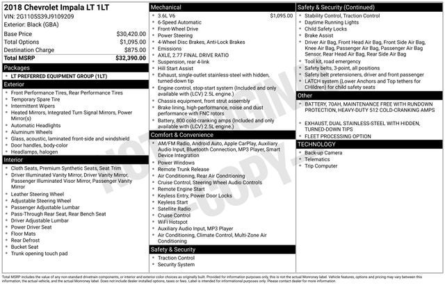 Black 2018 Chevrolet Impala LT 1LT 3.6L V6 DI DOHC 6-Speed Automatic Electronic with Overdrive FWD