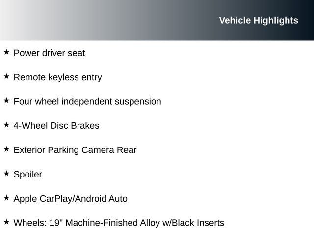 - Wheels: 19" Machine-Finished Alloy w/Black Inserts