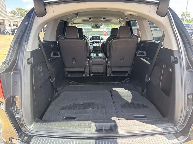 Crystal Black Pearl 2018 Honda Odyssey Elite FWD 10-Speed Automatic 3.5L V6 SOHC i-VTEC 24V WE DELIVER ANYWHERE, 11 Speakers, 3.61 Axle Ratio, 3rd row seats: split-bench, 4-Wheel Disc Brakes, A/V remote, ABS brakes, Air Conditioning, Alloy wheels, AM/FM radio: SiriusXM, Anti-whiplash front head restraints, Apple CarPlay/Android Auto, Auto High-beam Headlights, Auto-dimming Rear-View mirror, Automatic temperature control, Blind Spot Information (BSI) System warning, Brake assist, Bumpers: body-color, CD player, Compass, Delay-off headlights, Driver door bin, Driver vanity mirror, Driver's Seat Mounted Armrest, Dual front impact airbags, Dual front side impact airbags, DVD-Audio, Electronic Stability Control, Emergency communication system: HondaLink, Exterior Parking Camera Rear, Four wheel independent suspension, Front anti-roll bar, Front Bucket Seats, Front dual zone A/C, Front fog lights, Front reading lights, Fully automatic headlights, Garage door transmitter: HomeLink, Headphones, Heated & Ventilated Front Bucket Seats, Heated door mirrors, Heated front seats, Heated steering wheel, Illuminated entry, Knee airbag, Leather Seat Trim, Leather steering wheel, Low tire pressure warning, Memory seat, Navigation system: Honda Satellite-Linked Navigation System, Occupant sensing airbag, Outside temperature display, Overhead airbag, Overhead console, Panic alarm, Passenger door bin, Passenger seat mounted armrest, Passenger vanity mirror, Power door mirrors, Power driver seat, Power Liftgate, Power moonroof, Power passenger seat, Power steering, Power windows, Radio data system, Radio: 550-Watt AM/FM/HD Premium Audio System, Rain sensing wipers, Rear air conditioning, Rear anti-roll bar, Rear audio controls, Rear reading lights, Rear seat center armrest, Rear window defroster, Rear window wiper, Reclining 3rd row seat, Remote keyless entry, Security system, Speed control, Speed-sensing steering, Speed-Sensitive Wipers, Split folding rear seat, Spoiler, Steering wheel mounted audio controls, Tachometer, Telescoping steering wheel, Tilt steering wheel, Traction control, Trip computer, Turn signal indicator mirrors, Variably intermittent wipers, Ventilated front seats, Wheels: 19 Machine-Finished Alloy.