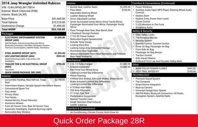 CARFAX One-Owner. Clean CARFAX. Black Clearcoat 2018 Jeep Wrangler Unlimited Rubicon 2.0L I4 DOHC 8-Speed Automatic 4WD