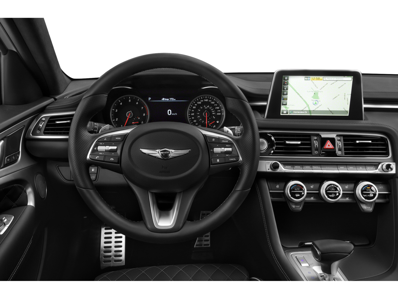 • Radio: AM/FM/HD Radio/SiriusXM Lexicon Audio -inc: 660-Watt, 8-inch 720P HD touchscreen display, integrated navigation, HD Traffic, 15-high-efficiency speakers including 2 subwoofers, 11-channel digital external amplifier, speed-sensing auto volume control, Bluetooth® hands-free phone system, Android Auto, Apple CarPlay, 2 front USB ports, auxiliary input jack and Genesis Connected Services telematics