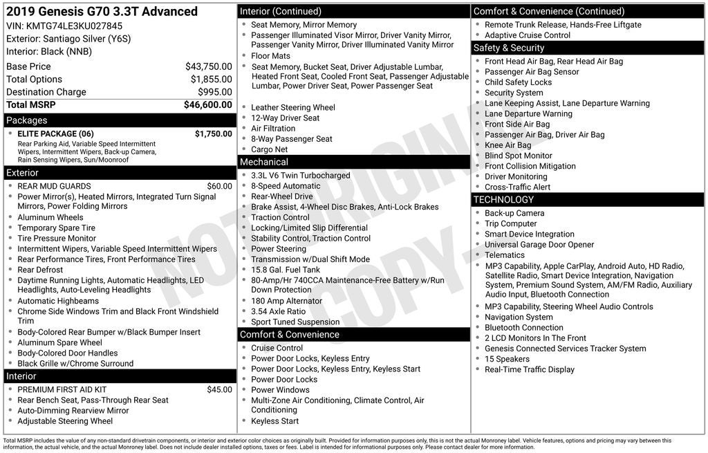 • Vehicle Name: Genesis G70