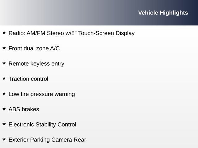 - Radio: AM/FM Stereo w/8" Touch-Screen Display
