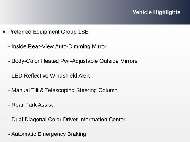 • Mirrors, outside heated power-adjustable, body-color, manual-folding and driver-side auto dimming with integrated turn signal indicators (Upgradeable to (DXR) outside heated power-adjustable, power-folding mirrors when (JSE) Platinum Package or (Y6L) Parking Package are ordered.)