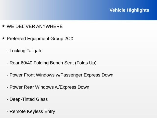 - Tailgate, locking utilizes same key as ignition and door (Upgraded to (QT5) EZ Lift power lock and release tailgate when (PCX) Custom Convenience Package is ordered.)