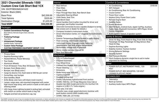 Black 2021 Chevrolet Silverado 1500 Custom 4WD 8-Speed Automatic 2.7L Turbo WE DELIVER ANYWHERE, Ford Blue Advantage Blue Certified Certified, 8-Speed Automatic, 4WD, Black Cloth, 170 Amp Alternator, 3.5 Diagonal Monochromatic Display, Bluetooth® For Phone, Body Color Grille, Color-Keyed Carpeting Floor Covering, Compass, Custom Convenience Package, Custom Value Package, Deep-Tinted Glass, Electric Rear-Window Defogger, Electronic Cruise Control, EZ Lift Power Lock & Release Tailgate, Front Frame-Mounted Black Recovery Hooks, Front Rubberized Vinyl Floor Mats, Infotainment Package, LED Cargo Area Lighting, Manual Tilt Wheel Steering Column, Power Door Locks, Power Front Windows w/Driver Express Up/Down, Power Front Windows w/Passenger Express Down, Power Rear Windows w/Express Down, Preferred Equipment Group 1CX, Rear 60/40 Folding Bench Seat (Folds Up), Rear Rubberized-Vinyl Floor Mats, Remote Keyless Entry, Remote Vehicle Starter System, Standard Tailgate, Trailering Package, 120-Volt Bed Mounted Power Outlet, 120-Volt Instrument Panel Power Outlet, 3.42 Rear Axle Ratio, 4-Wheel Disc Brakes, 40/20/40 Front Split Bench Seat, 4G LTE Wi-Fi Hot Spot Capable, 6 Speakers, ABS brakes, Air Conditioning, Alloy wheels, AM/FM radio: SiriusXM, Apple CarPlay/Android Auto, Brake assist, Bumpers: body-color, Chevrolet Connected Access Capable, Cloth Seat Trim, Delay-off headlights, Driver door bin, Driver vanity mirror, Dual front impact airbags, Dual front side impact airbags, Electronic Stability Control, Front anti-roll bar, Front Center Armrest w/Storage, Front License Plate Kit, Front reading lights, Front wheel independent suspension, Fully automatic headlights, Heated door mirrors, Heavy Duty Suspension, Hitch Guidance, Illuminated entry, Low tire pressure warning, Occupant sensing airbag, OnStar & Chevrolet Connected Services Capable, Outside temperature display, Overhead airbag, Overhead console, Panic alarm, Passenger door bin, Passenger vanity mirror, Polished Exhaust Tip, Power door mirrors, Power steering, Power windows, Premium audio system: Chevrolet Infotainment 3, Radio data system, Radio: Chevrolet Infotainment 3 System, Rear reading lights, Rear step bumper, Rear window defroster, Remote keyless entry, Security system, Single-Zone Manual/Semi-Automatic Air Conditioning, SiriusXM Radio, Speed control, Speed-sensing steering, Split folding rear seat, Tachometer, Theft Deterrent System (Unauthorized Entry), Tilt steering wheel, Traction control, Trip computer, Variably intermittent wipers, Voltmeter, Wheels: 20 x 9 Bright Silver Painted Aluminum, 8-Speed Automatic, 4WD, Black Cloth, 170 Amp Alternator, 3.5 Diagonal Monochromatic Display, Bluetooth® For Phone, Body Color Grille, Color-Keyed Carpeting Floor Covering, Compass, Custom Convenience Package, Custom Value Package, Deep-Tinted Glass, Electric Rear-Window Defogger, Electronic Cruise Control, EZ Lift Power Lock & Release Tailgate, Front Frame-Mounted Black Recovery Hooks, Front Rubberized Vinyl Floor Mats, Infotainment Package, LED Cargo Area Lighting, Manual Tilt Wheel Steering Column, Power Door Locks, Power Front Windows w/Driver Express Up/Down, Power Front Windows w/Passenger Express Down, Power Rear Windows w/Express Down, Preferred Equipment Group 1CX, Rear 60/40 Folding Bench Seat (Folds Up), Rear Rubberized-Vinyl Floor Mats, Remote Keyless Entry, Remote Vehicle Starter System, Standard Tailgate, Trailering Pa