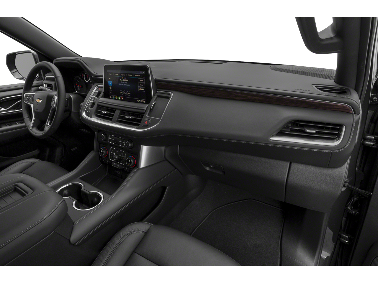10-Way Power Driver & Passenger Seat Adjusters, 1st & 2nd Row Color-Keyed Carpeted Floor Mats, 2 USB Data Ports, 2nd Row Manual Bucket Seats, 3.23 Rear Axle Ratio, 3rd row seats: split-bench, 4-Wheel Disc Brakes, 9 Speakers, ABS brakes, Air Conditioning, Alloy wheels, AM/FM radio: SiriusXM with 360L, Apple CarPlay/Android Auto, Auto High-beam Headlights, Auto-Dimming Inside Rear-View Mirror, Auto-dimming Rear-View mirror, Automatic temperature control, Black Name Plates (LPO), Bose 9-Speaker Stereo Audio System Feature, Brake assist, Bright Front & Rear Door Sill Plates, Bumpers: body-color, Color-Keyed Carpeting Floor Covering, Compass, Delay-off headlights, Driver & Front Outboard Passenger Airbags, Driver door bin, Driver vanity mirror, Dual front impact airbags, Dual front side impact airbags, Electronic Stability Control, Emergency communication system: OnStar and Chevrolet connected services capable, Floor Console w/Storage Area, Four wheel independent suspension, Front & Rear Black Bowtie Emblems (LPO), Front anti-roll bar, Front Bucket Seats, Front Center Armrest, Front dual zone A/C, Front High-Back Reclining Bucket Seats, Front reading lights, Fully automatic headlights, Garage door transmitter, Hands-Free Rear Power Programmable Liftgate, HD Radio, Heated door mirrors, Heated Driver & Front Passenger Seats, Heated front seats, Illuminated entry, Infotainment Display, Leather Seat Trim, Leather steering wheel, Leather-Wrapped Steering Wheel, LED Daytime Running Lamps, Low tire pressure warning, Memory seat, Memory Settings for Driver, Not Equipped w/Automatic Stop/Start, Not Equipped w/Steering Column Lock, Occupant sensing airbag, Outside temperature display, Overhead airbag, Overhead console, Panic alarm, Passenger door bin, Passenger vanity mirror, Power door mirrors, Power driver seat, Power Liftgate, Power passenger seat, Power steering, Power windows, Preferred Equipment Group 1LT, Premium audio system: Chevrolet Infotainment 3, Premium Smooth Ride Suspension, Radio: Chevrolet Infotainment 3 Plus System, Rain sensing wipers, Rear air conditioning, Rear anti-roll bar, Rear reading lights, Rear seat center armrest, Rear window defroster, Rear window wiper, Remote keyless entry, Remote Start, Roof rack: rails only, Security system, SiriusXM Radio w/360L, Speed control, Speed-sensing steering, Split folding rear seat, Spoiler, Steering wheel mounted audio controls, Tachometer, Telescoping steering wheel, Tilt steering wheel, Traction control, Trip computer, Universal Home Remote, Variably intermittent wipers, Voltmeter, Wheels: 18 x 8.5 Bright Silver Painted Aluminum, Wheels: 20 x 9 Painted Aluminum.
