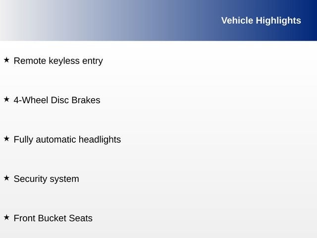 - Remote Keyless Entry w/Integrated Key Transmitter, Illuminated Entry, Illuminated Ignition Switch and Panic Button