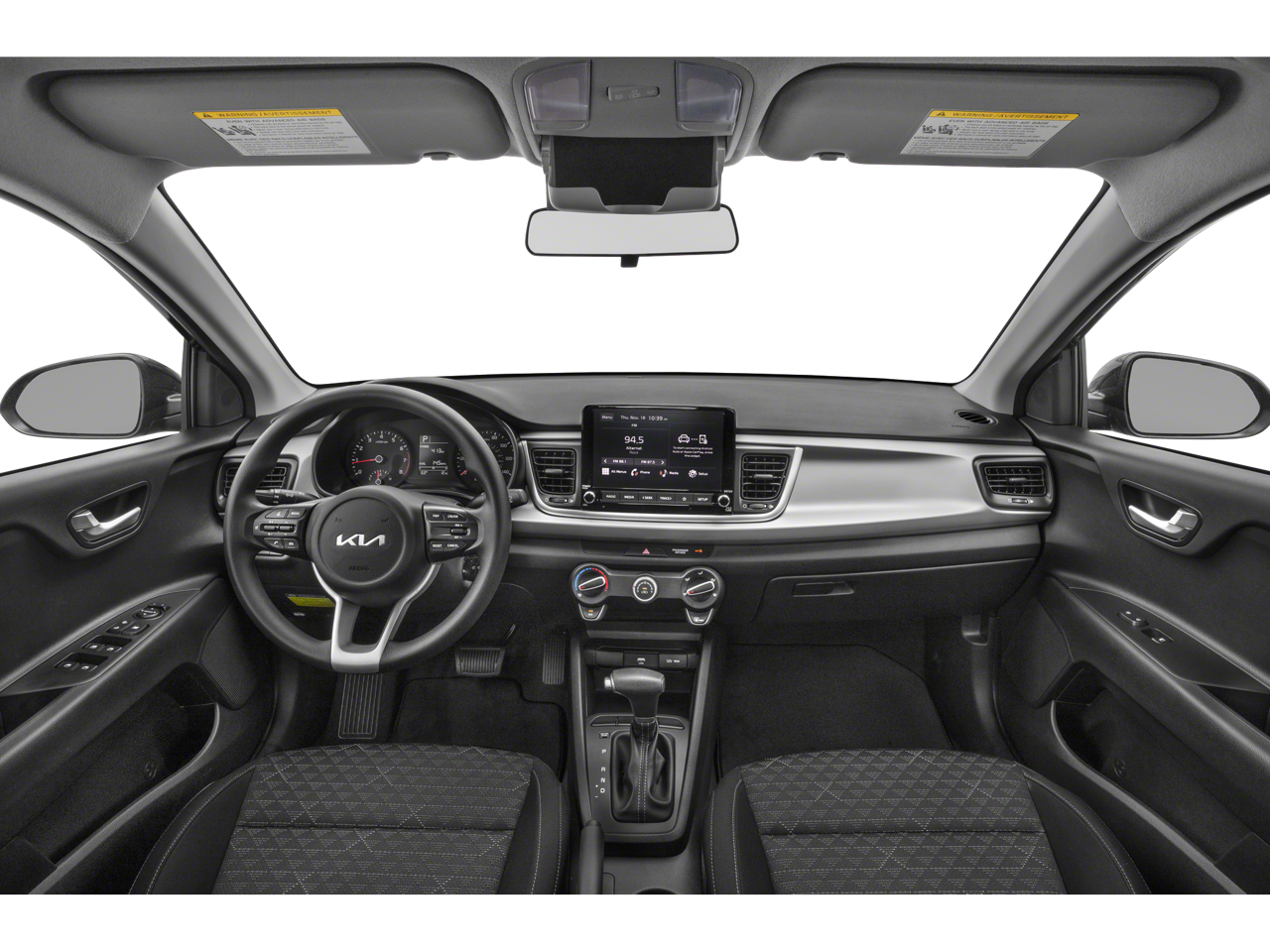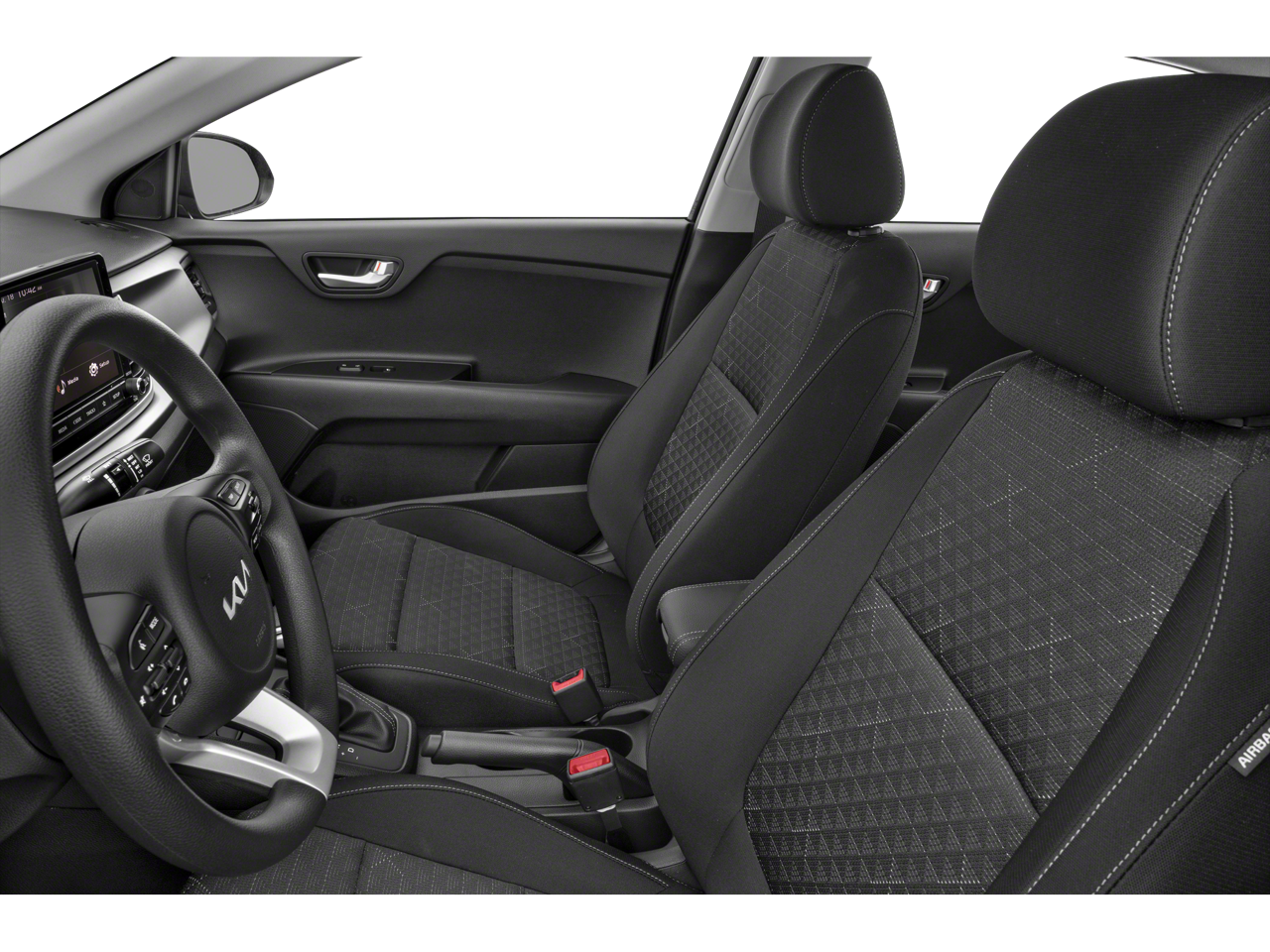 Step inside the 2023 Kia Rio S and discover a cabin that prioritizes your comfort and convenience. The spacious interior, with its Woven & Tricot Cloth Seat Trim, Front Center Armrest, and Split Folding Rear Seat, offers ample room for you and your passengers to enjoy the ride. The intuitive layout of the dashboard, complete with an Overhead Console and Tachometer, ensures you stay informed and in control behind the wheel.