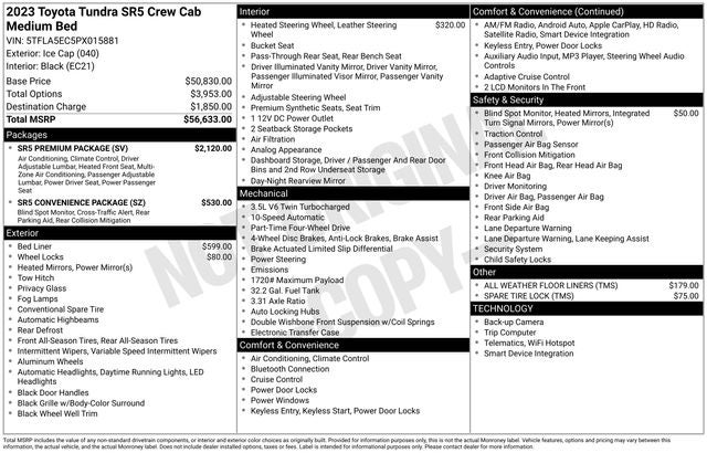 At our dealership, we're committed to providing our customers with an exceptional buying experience. Our knowledgeable sales team is here to answer any questions you may have and help you find the perfect vehicle to fit your needs and lifestyle. We invite you to visit our showroom and explore the 2023 Toyota Tundra SR5 in person. We're confident you'll be impressed by its capabilities and eager to take it home.