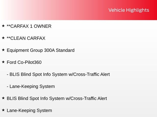 **CARFAX 1 OWNER, **CLEAN CARFAX, BLIS Blind Spot Info System w/Cross-Traffic Alert, Equipment Group 300A Standard, Ford Co-Pilot360, Lane-Keeping System.