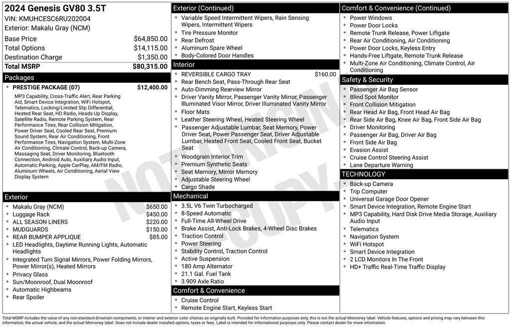 - Vehicle Name: Genesis GV80