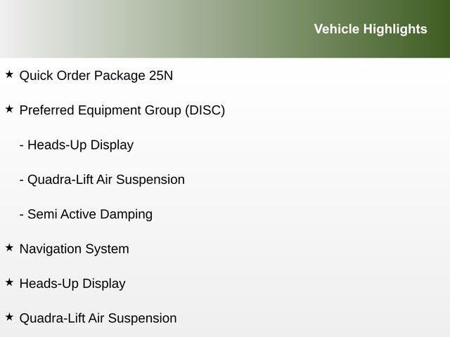Heads-Up Display, Navigation System, Preferred Equipment Group (DISC), Quadra-Lift Air Suspension, Quick Order Package 25N, Semi Active Damping.