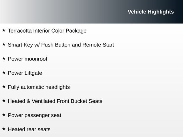 Adorned in a stunning Gray exterior, the Telluride SX-Prestige X-Line commands attention with its bold and distinctive presence. Step inside and be enveloped in the Terracotta Interior Color Package, which exudes a warm and inviting ambiance. Indulge in the convenience of the X-Line Side Step Bars, providing effortless access to this impressive SUV.
