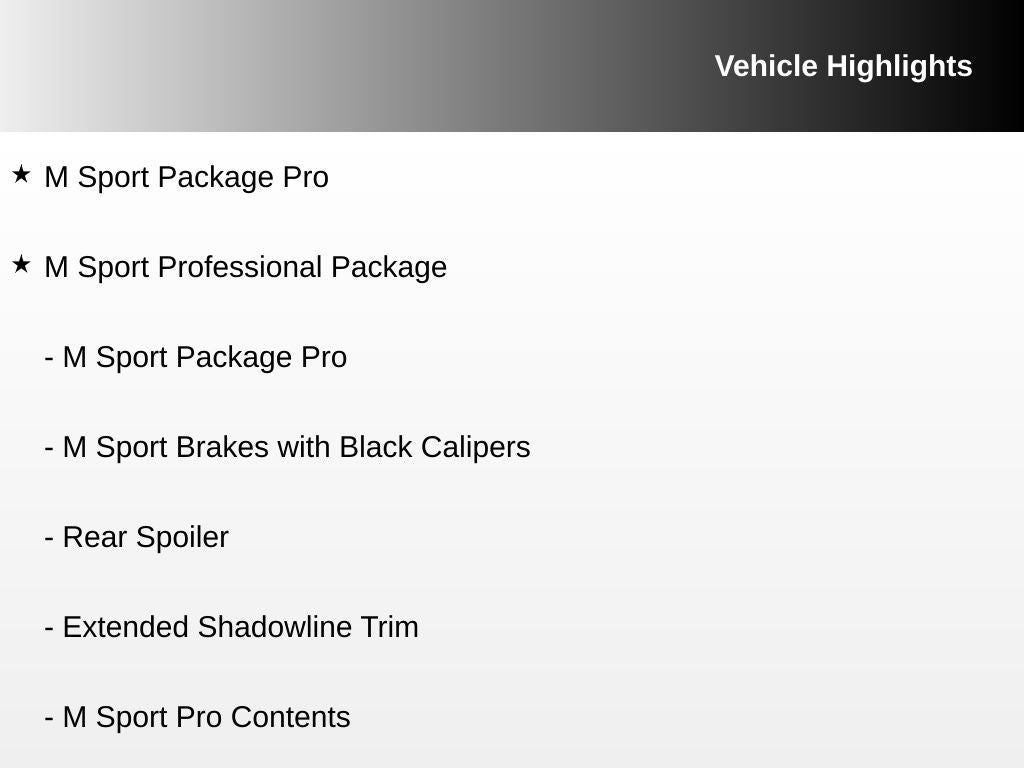 AWD, Amarone Leather, 18 Speakers, ACC Stop and Go + Active Driving Assistant, Adaptive suspension, Alcantara Headliner in Coordinated Upholstery Color, Apple CarPlay and Android Auto Compatibility, Bowers & Wilkins Surround Sound, Extended Merino Leather Upholstery, Extended Shadowline Trim, Exterior Parking Camera Rear, Front Ventilated Seats, Head restraints memory, Heads-Up Display, Heated front seats, Heated rear seats, Heated Steering Wheel/Front and Rear Seats/Armrests, Illuminated Kidney Grille, M Sport Brakes with Black Calipers, M Sport Package Pro, M Sport Pro Contents, M Sport Professional Package, Memory seat, Navigation system: BMW Maps Navigation, Parking Assistant Delete, Parking Assistant Professional, Premium Package, Rain sensing wipers, Rear Spoiler, Surround View with 3D View, Wheels: 20 M Aero Bicolor Style 907M.