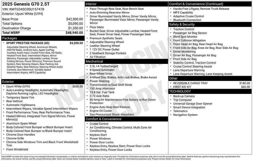 2025 Genesis G70 2.5T