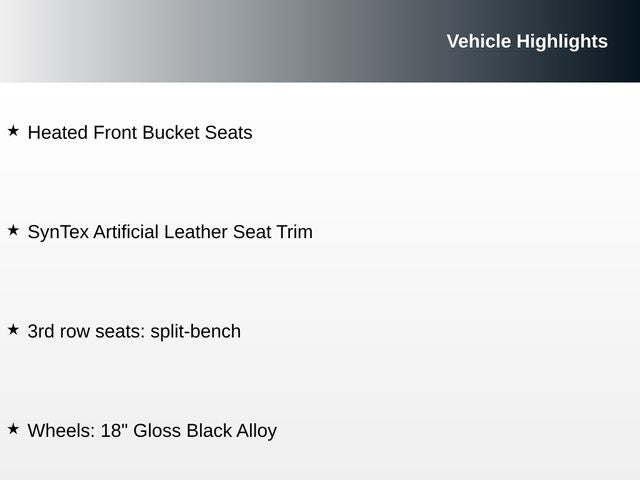 - Fixed 50-50 Split-Bench 3rd Row Seat Front, Manual Fold Into Floor, 2 Power and w/Tilt Head Restraints