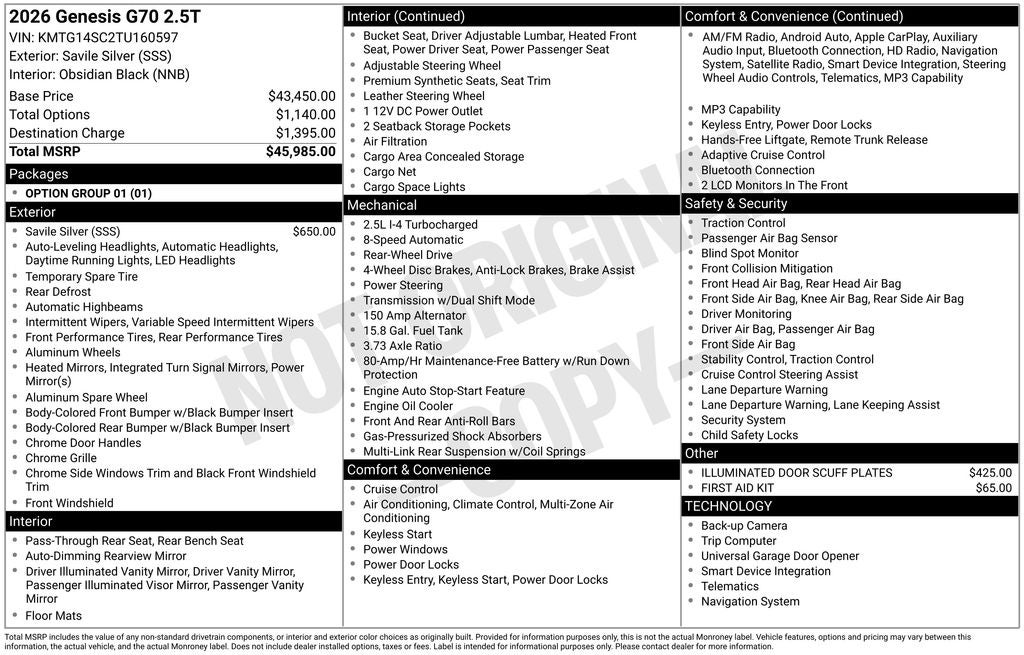 2026 Genesis G70 2.5T