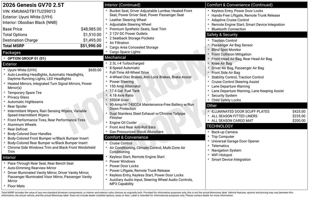 - Vehicle Name: Genesis GV70